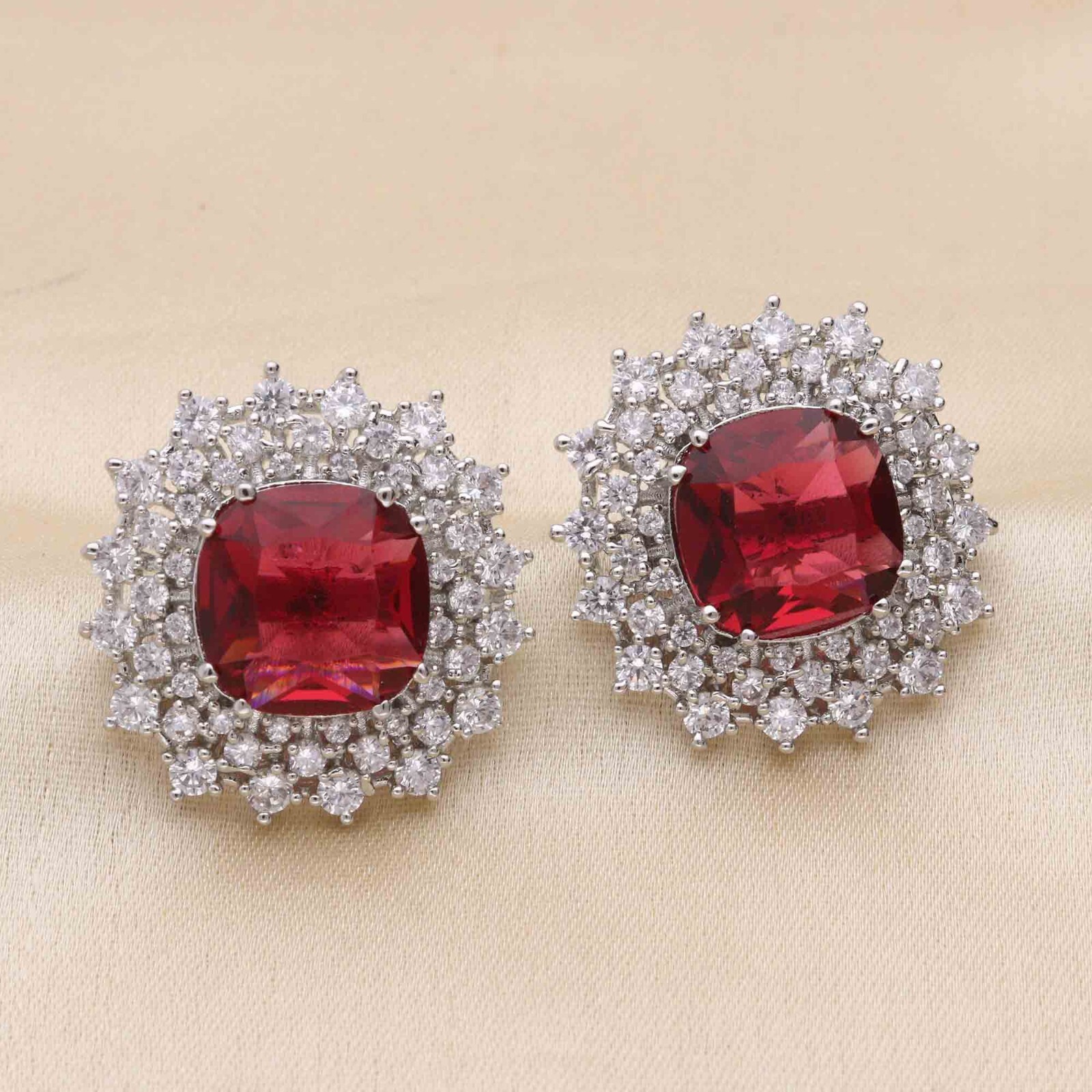 - Clous en pierre CZ Statement en finition argentée - boucles d'oreilles...